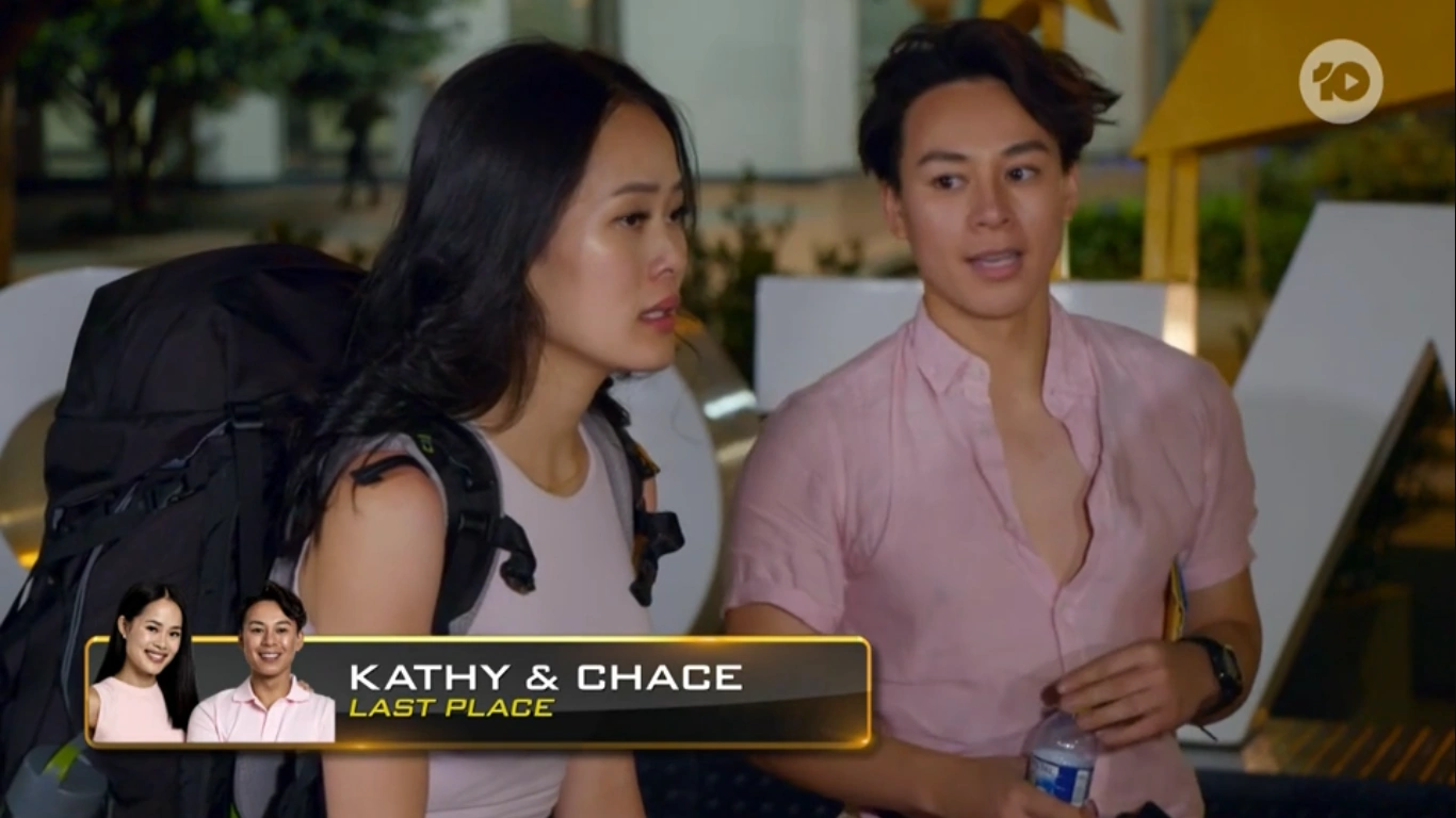 In the fourth leg, Kathy & Chace were unable to continue the race. They received clearance and returned in the ninth leg.